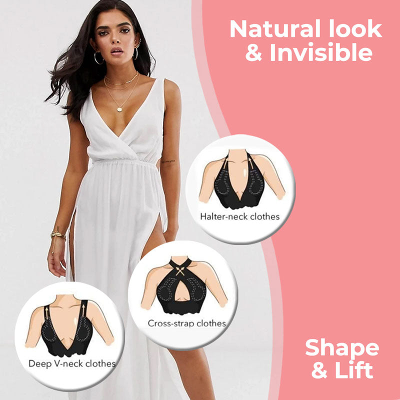 Der unsichtbare Hebe-BH bedeutet kein Ziehen und Verrutschen der Träger wie bei einem normalen BH und ist auch eine einzigartige Lösung gegen Rückenwülste.