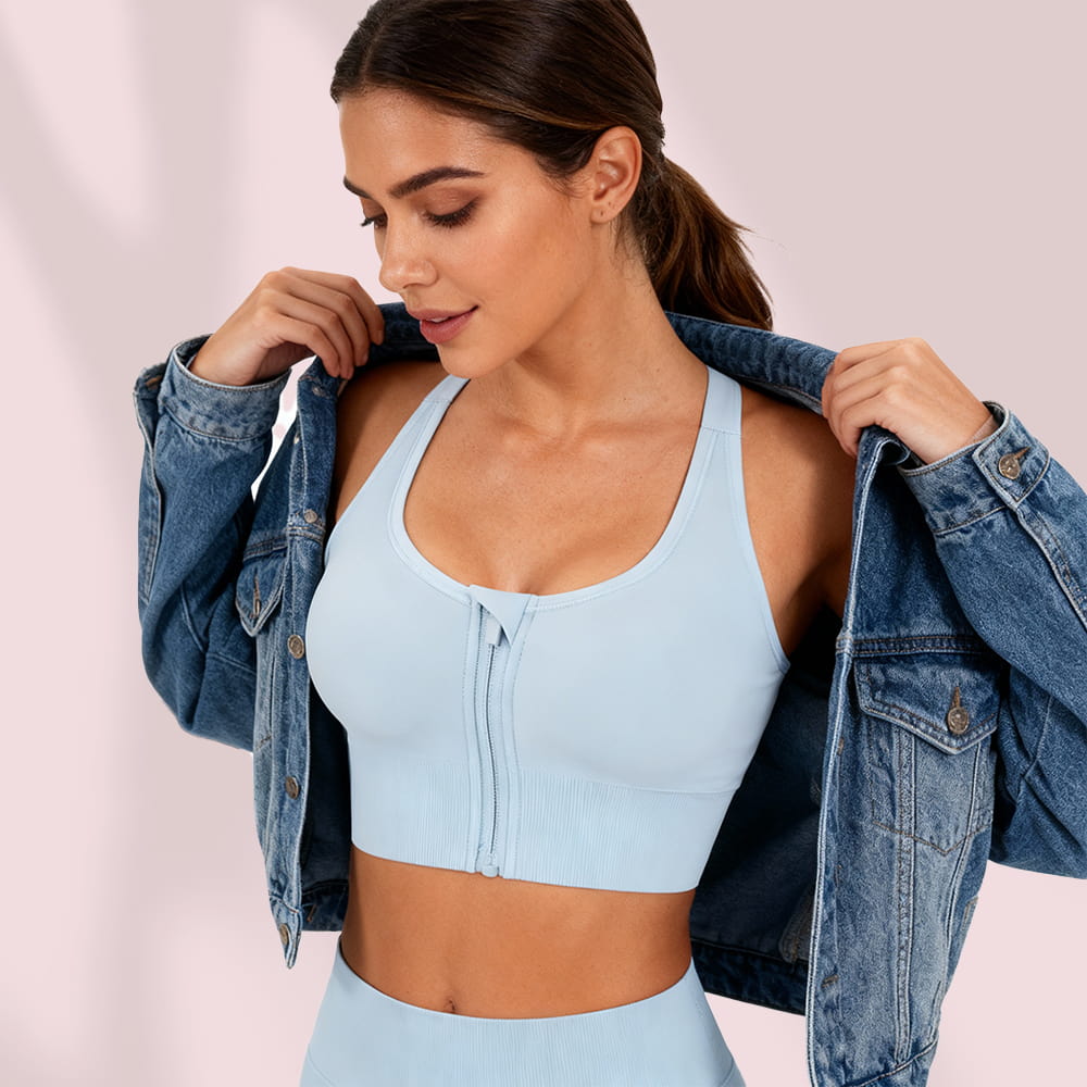 Unser Front Zip Anti-Bounce Sport-BH löst dieses Problem mit einem völlig anderen Ansatz – einem, der Ihnen Freiheit von dieser Qual verschafft. Anstelle von Kompression oder dünnem Stoff haben wir ein revolutionäres Stützsystem entwickelt, das mit Ihrem Körper arbeitet und nicht gegen ihn. Die breiten, gekreuzten Träger verteilen das Gewicht auf Ihren gesamten oberen Rücken und Ihre Schultern – und beseitigen so vollständig die schmerzhaften Eindrücke, Blutergüsse und roten Flecken herkömmlicher Träger, während sie gleichzeitig echten Halt bieten. Die Anti-Vibrations-Technologie verhindert schmerzhafte Sprünge an der Quelle, ohne Sie einzuengen, sodass Sie felsenfeste Stabilität ohne Erstickungsgefahr erhalten. Und der Frontreißverschluss? Er ist nicht nur praktisch, sondern auch Ihr Fluchtweg aus dem täglichen Ringkampf. Einfach ziehen, schließen, fertig.